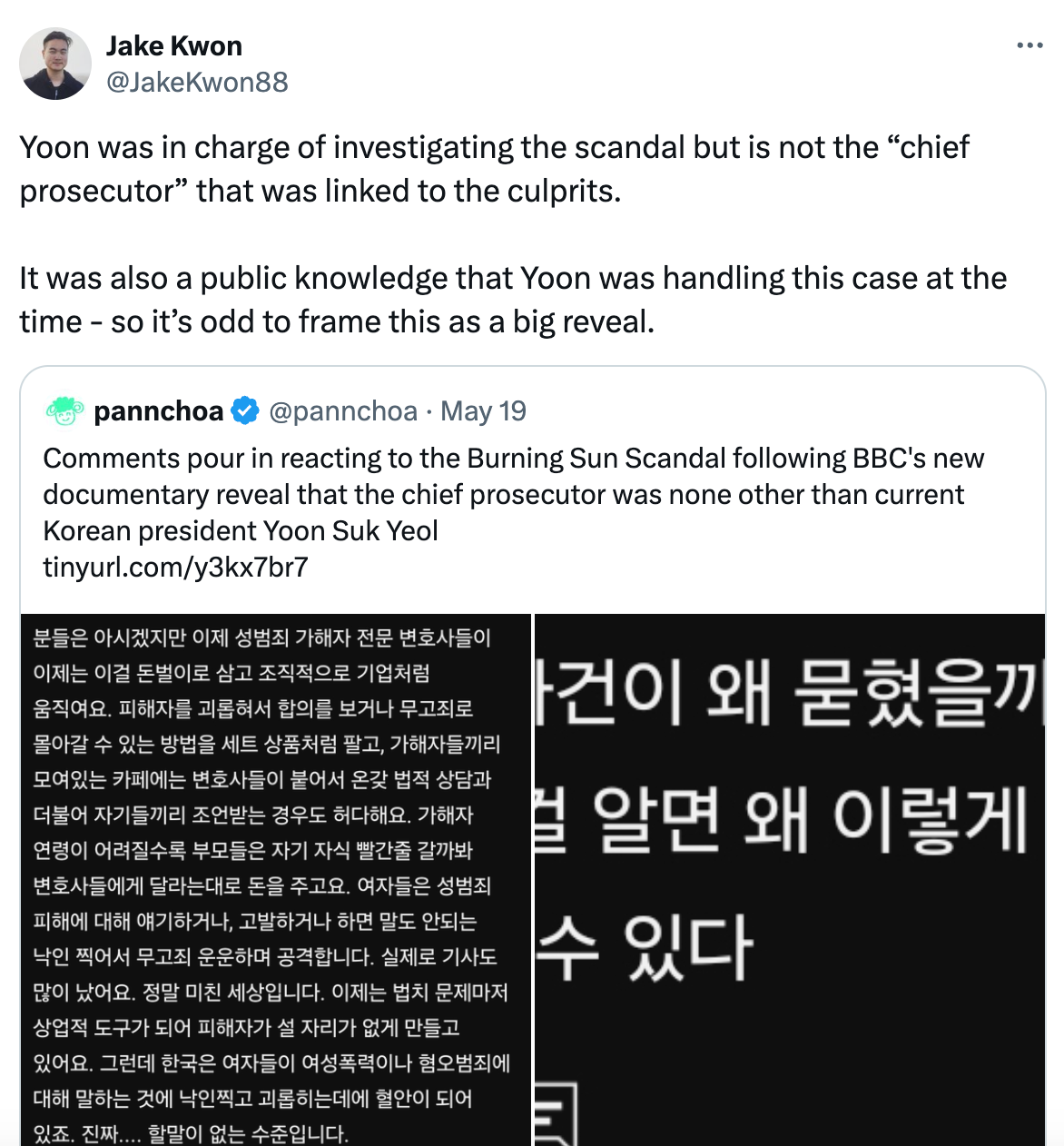 Misinformation spread, such as by sizable accounts sharing erroneous information about current President Yoon's role. One thing that kept on raising flags, however, was less the misinformation, and more the framing. As Jake Kwon of the BBC points out in the post linked here, "it's odd to frame this [documentary's details] as a big reveal."