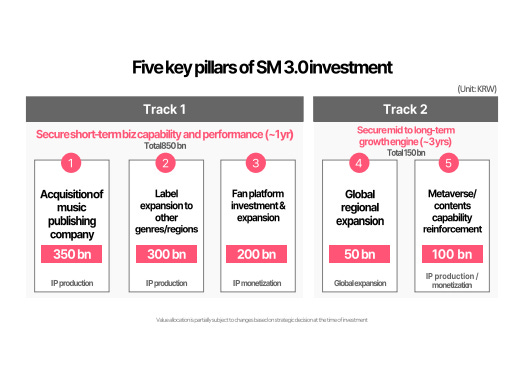 Expanding SM’s musical portfolio, both in Korea and outside of it, is of importance for SM 3.0, with an emphasis on expanding genres. A major goal is to secure a competitive artist pool, using the music publishing business as the engine for SM’s high growth. The goal is to become the number one company in the K-pop industry within the next three years. Considering that SM has fallen by the wayside in the face of the success of Hybe and, to a lesser degree, JYP, this is a lofty goal. If SM were to accomplish it, I doubt the SM that we’ve seen in recent years will feel like the SM we see by the end of 2025.