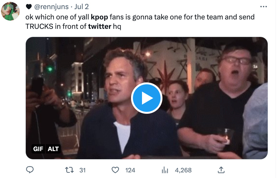 TikTok is obviously the most important social media app for K-pop, and pop culture in general, at the moment. But it, and Instagram and other popular already-functional apps, don’t serve the same function as Twitter, as a text-based space built for conversation; they’re built for single-sided positing in video or photo format. Reddit is also struggling at the moment, and it never quite feels as fluid as Twitter does for community building.
